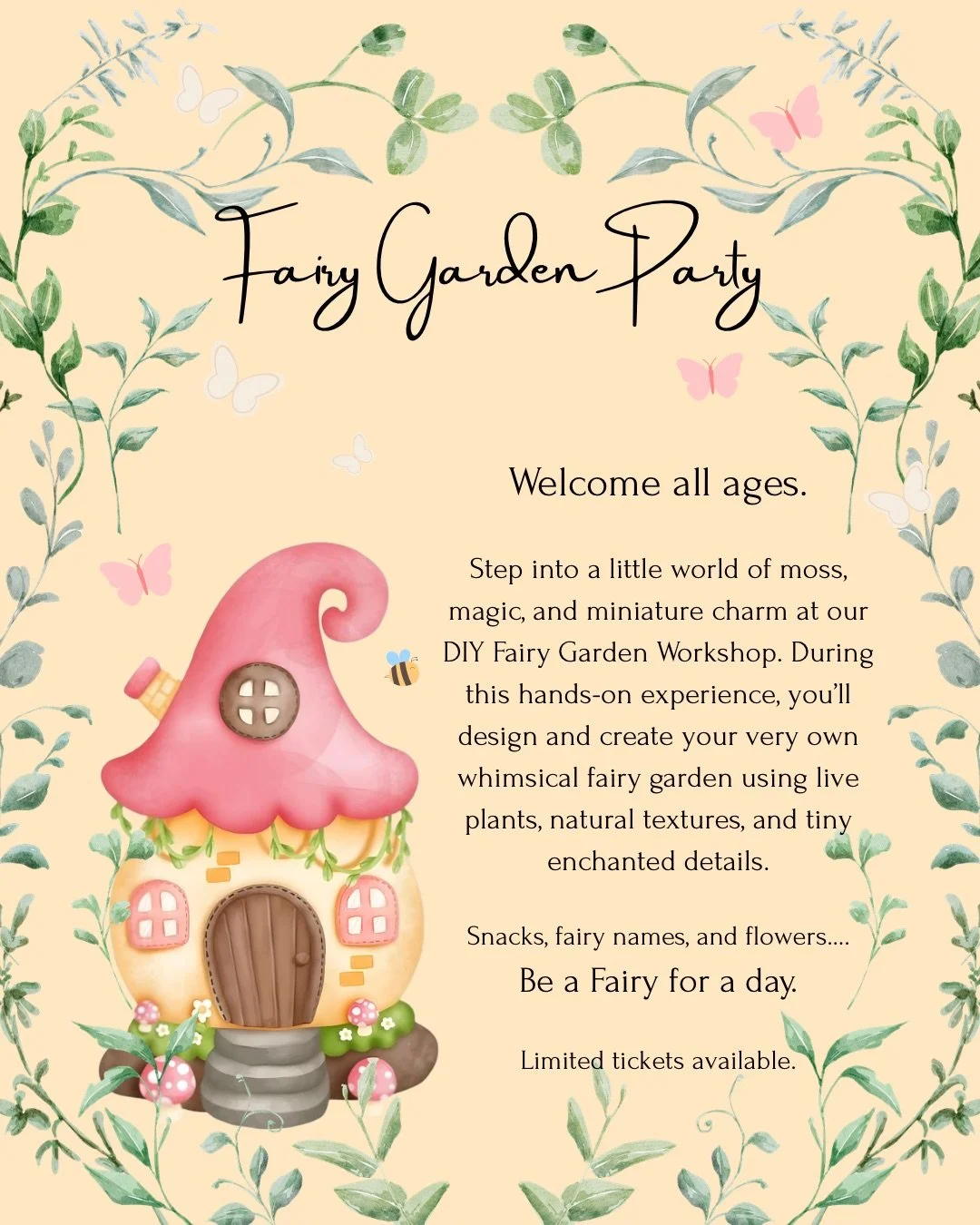 Perfect for all ages, especially for the littles! Let them have fun with fairies & glitter & more! Spring sodas & fairy dusted snacks for the most fun afternoon!