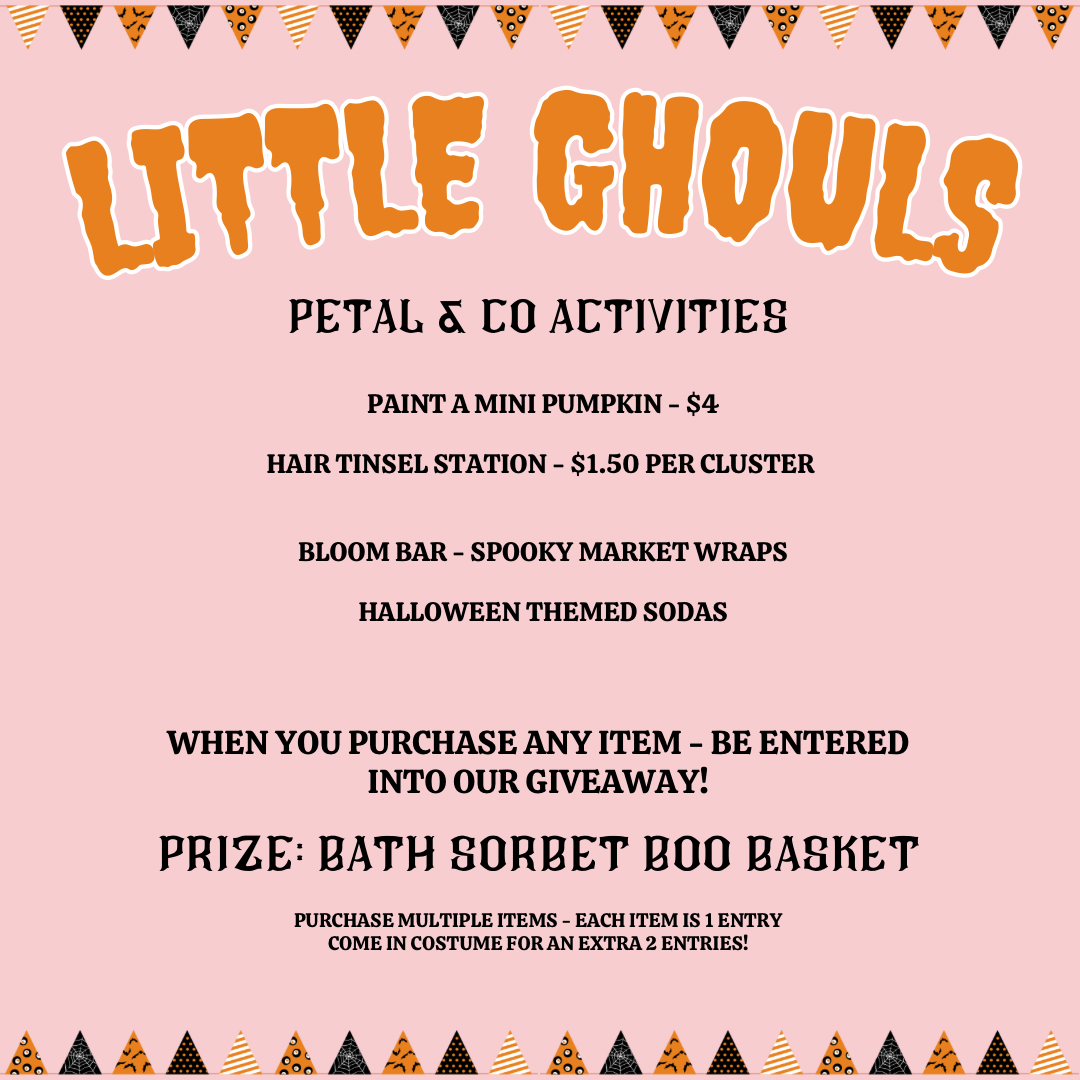 Join us for a spooktacular time filled with fun and floral magic! Perfect for your little ghouls and goblins, this Halloween-inspired event includes: